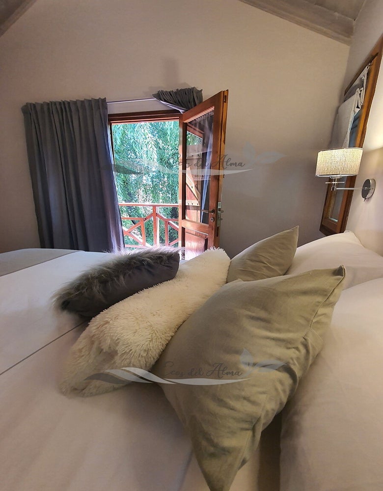 Dormitorio con somier doble. TV smart Android 32". Netflix, Prime Video y YouTube propios (sin avisos). Aire acondicionado frío-calor. Placard. Caja de seguridad apta notebook.
